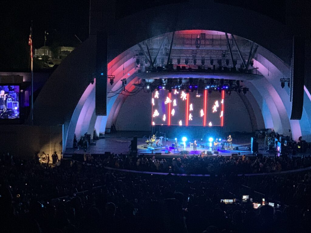 I bought AMEX presale tickets for this show because I knew it would be great. My husband wanted to join (and he never wants to join!), so I spent a little money and got decent seats so he wouldn’t have to schlep to the top of the Bowl. We were in section N1, so about center and row 6 on the end so there would be no one directly in front of us. We took the bus up from Culver City and it was quick and easy as usual. Julie texted me on the way to the bus to say she still had 5 more visits and was going to be late. She didn’t realize the show started at 7. I tried to send her her ticket through the Ticketmaster app but we couldn’t get it to work. So we waited for her outside the gate. I have to say the people watching was interesting. We missed almost all of Lene Lovich but managed to get into the Bowl just in time for Lucky Number. When we got to our seats, people had spread and we had to fight a little to get them to move down. Later, between bands a security guy actually came through our row and checked all the tickets because people on the other end complained that someone was in their seats so it may have been more than just people spreading.